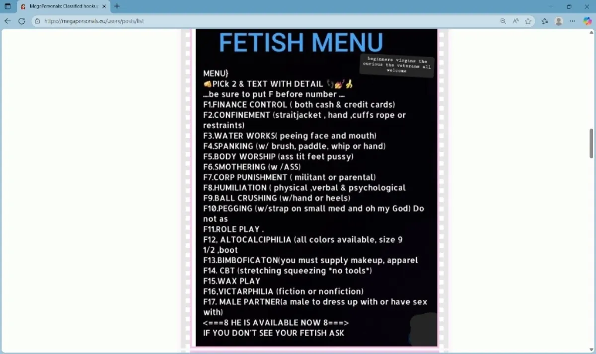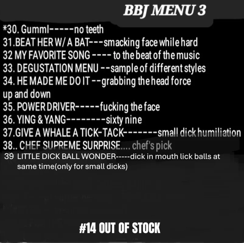 39 NEW ADDITION TO THE MENU.....[not on menu list yet] #39 LITTLE DICK BALL WONDER ...................... MENU LOCATED IN PHOTOS ... ............................ TEXT when you are ready for an amazing experience for fetish, please ...F then # IF you don't see your style, kink, fetish .. let me know. THANK YOU. INCALL qv1$00 =15 min.ONLY BBJ HHR $150 3 picks menu bbj...HR $200 4 menu picks with full service AND I HOPE TOπ